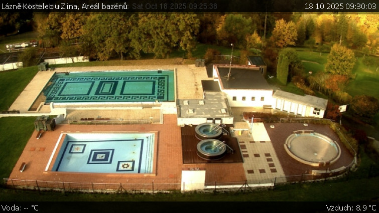Pohled na vyhřívané bazény lázní Kostelec u Zlína.